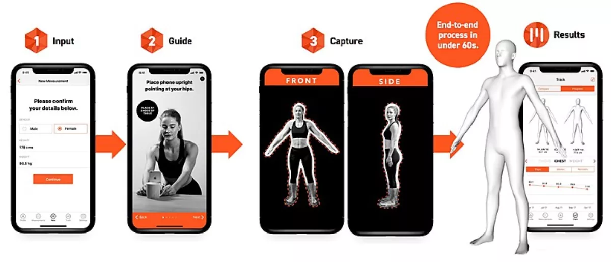 The app delivers 97% accurate body measurements, with a repeatability of 98% and can fit snugly into third party technology.